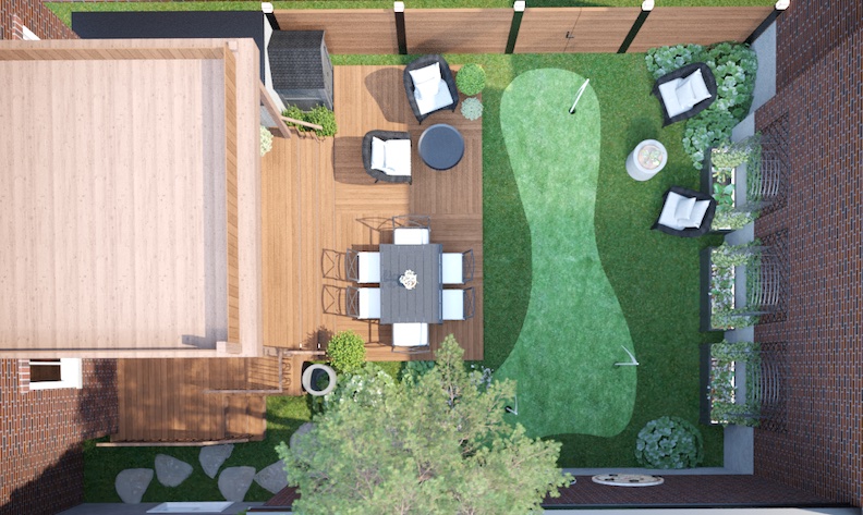 Offrir aux clients l’occasion de profiter enfin de leur cour après plus de 20 ans, et réaliser le rêve de madame d’avoir un mini-green de golf.