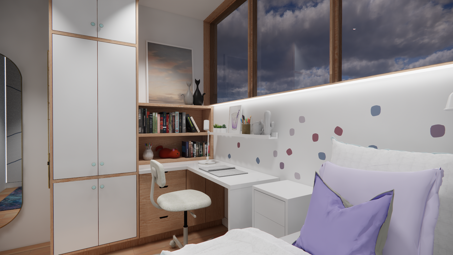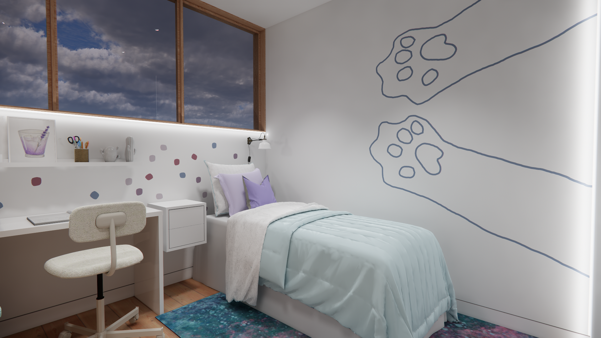 Trois frères et sœurs, âgés de 9 à 11 ans, avaient des goûts et des intérêts bien différents pour leur nouvelle chambre. Ils ont été rencontrés et entendus comme de vrais clients. L'expérience a été très enrichissante pour nous